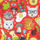 Cat and egg on red
