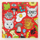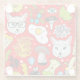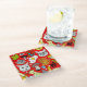 Cat and egg on red glass coaster