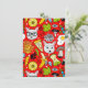 Cat and egg on red invitation
