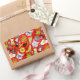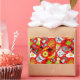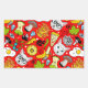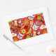 Cat and egg on red rectangular sticker
