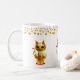 Elegant and beautiful mug with cat and gold dots confetti decoration on white background. The gold design is just an image. Enjoy this luxury mug.