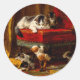 Cat and Kittens Playing with Chair Classic Round Sticker