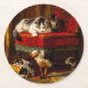 Cat and Kittens Playing with Chair Round Paper Coaster