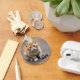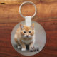 This key chain features and adorable kitten who is not quite sure what to do with the mouse. Two different images, one on each side.