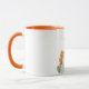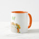 Cute, cartoon, cat with orange spring flowers. Girly, adorable monogrammed mug.