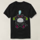 I give wanted to give this a 4 instead of a 5 because these Basic DARK T0shirts run unexpectedly SLIM or Narrow. Which is great if you do not have a potbelly, but I have a paunch. It isn't the shirt's fault that I've got a beer belly. The design and shirt itself is a quality cotton shirt. The color is more of a deep purple, but still a very pretty color. The Basic DARK T-shirts run a bit SLIMMER than the Basic Ts. The neck is a fraction narrower (or seems to be narrower) also. I'm a paunchy middle-aged woman and my neck is 12 inches (31cm) thick and the neckline fell about the same as in the photo of the man, and I had the desire to tug it a bit. So if you're a thick necked man or like loose shirts, be aware these are slimmer shirts. Once I get rid of my lockdown paunch it'll look great. The shirt washed well in cold water with no apparent bleeding. We don't have a dryer, so it hung dry. Did not shrink. Love the colors and the design. The design looks smaller on my shirt than it does on the model on-line. But still, it looks good on the shirt. The printing looks as it does on the model, just the size seems fractionally smaller. Washed garment in cold water, hung dry and design appeared unaffected.