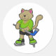 Cat at Ice hockey with Ice hockey stick Classic Round Sticker