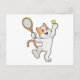Cat at Tennis with Tennis racket Postcard