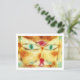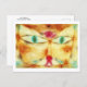 A fine art postcard with the painting Cat and Bird (1928) by Paul Klee (1879-1940). A German expressionist painter born in Switzerland. A stylised green-eyed cat with a bird on his nose.
