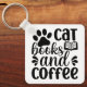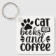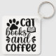 "Cat Books and Coffee" Cute Typography Key Ring