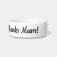 This is a heavy, durable bowl decorated with Tibbies of many colors, the perfect size for hungry/thirsty Tibs. The design is interesting and printing clear.