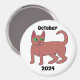 Imagine a charming brown cat with sleek fur and bright green eyes, standing confidently with its tail held high. The cat is perched atop a glossy round white magnet, which prominently displays the words "October 2024" in a stylish font. The contrast between the rich brown of the cat's fur and the crisp white of the magnet makes for a striking visual, while the vibrant green of the cat's eyes adds a touch of playfulness to the scene. The overall image conveys a sense of whimsy and warmth, perfect for the autumn season.