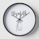 Hand Drawn Pet Cat cartoon wall clock, with a hand drawn winking kitty design and customisable script typography. A cute addition to your entertaining accessories.