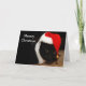 Sweet Christmas greeting card, with a photograph of a black cat in a red Santa hat, with Meowy Christmas in white text, and a greeting on the inside. All text is customisable to read anything you wish. Great holiday card for any cat fanciers.