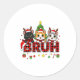 Cat Christmas Light Reindeer Santa Bruh Funny Classic Round Sticker