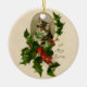 Cat Christmas Merry Holly Kitten Antique Art Ceramic Tree Decoration