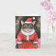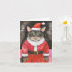 Handpainted watercolor painting of a cat wearing santa outfit, christmas card for cat lovers.