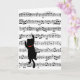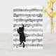 Black cat silhouette climbing up sheet music for birthday.