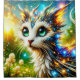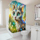 This shower curtain has a cat creature on it.