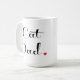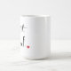 White mug with black lettering and a red heart at the end.