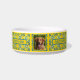 This is a heavy, durable bowl decorated with Tibbies of many colors, the perfect size for hungry/thirsty Tibs. The design is interesting and printing clear.