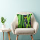 This pillow has a cool picture of a cat looking out of grass on it.