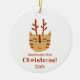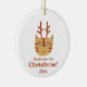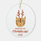 A cute and fun cat with antlers to make you smile. Back features a matching pattern. Change the name and year to personalise. Original art by Nic Squirrell.