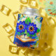 Can Cooler featuring Louis Wain’s animal painting Cat Flower Eyes (1860-1939). A rainbow cat widely grins. Blue flowers cover his eyes. A wonderful gift for cat lovers and English art.