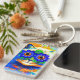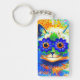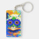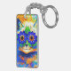 Keychain featuring Louis Wain’s animal painting Cat Flower Eyes (1860-1939). A rainbow cat widely grins. Blue flowers cover his eyes. A wonderful gift for cat lovers and English art.