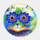 Magnet featuring Louis Wain’s animal painting Cat Flower Eyes (1860-1939). A rainbow cat widely grins. Blue flowers cover his eyes. A wonderful gift for cat lovers and English art.