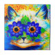 Tile featuring Louis Wain’s animal painting Cat Flower Eyes (1860-1939). A rainbow cat widely grins. Blue flowers cover his eyes. A wonderful gift for cat lovers and English art.