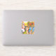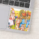 Sticker featuring Louis Wain’s animal painting Cats Relaxing in the Grounds at Napsbury (1860-1939). A smiling cat pours milk into teacups while watching six smaller cats drink milk, eat sweets, and play games in a garden. A wonderful gift for cat lovers and English art.