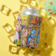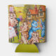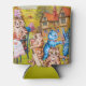 Can Cooler featuring Louis Wain’s animal painting Cats Relaxing in the Grounds at Napsbury (1860-1939). A smiling cat pours milk into teacups while watching six smaller cats drink milk, eat sweets, and play games in a garden. A wonderful gift for cat lovers and English art.