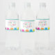 Modern, trendy, kawaii, cute, colourful personalised Purrfect Birthday party water bottle label, with custom girl's name and funny cat pattern.