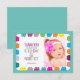 Modern, kawaii, colourful, pastel Purrfect Birthday thank you card with photo of the girl and cute cat pattern.