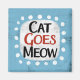 "Cat Goes Meow" is a fun text design with a white accent shape surrounded by white whimsical textured dots.