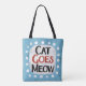"Cat Goes Meow" is a fun text design with a white accent shape surrounded by white whimsical textured dots.