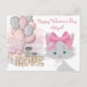 This adorable kitten Valentine's day design features a grey kitten in a beautiful scene with balloons and lights and the word love. Personalise with a name and even a custom a greeting.