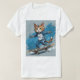 Cool cat on the move! This t-shirt features a fun and stylish illustration of a cat riding a skateboard, perfect for animal lovers and streetwear fans alike.
