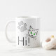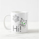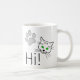 Hi text and drawings of a cats face with green eyes and a paw. Cats greetings. Funny coffee mug for anyone. Customisable. You can change the image.