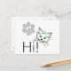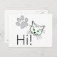Hi text and drawings of a cats face with green eyes and a paw. Cats greetings. Horizontal format products and gifts for fun and laugh.