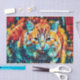 Boho orange teal blue colourful, psychedelic, hippie tabby kitty cat craft decoupage tissue paper. Cool, modern, trendy, groovy, bohemian design. Photo art gift wrap. Look for matching products in my store collection. Image copyright Marg Seregelyi Photography.