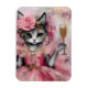 Adorable cat in a pink dress and pearls with a gold drink in her hand fantasy AI generated collage art