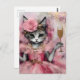 Cat in a Pink Dress with a Golden Drink Postcard