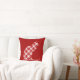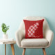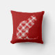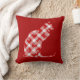 Pillow in a sitting cat silhouette in holiday pattern of red and white buffalo plaid and scattered snowflakes