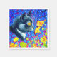 Napkins featuring Louis Wain’s animal painting Cat in Sea of Flowers (1860-1939). A black and white cat with golden eyes smells yellow flowers. In the purple background are blue flowers. A wonderful gift for cat lovers and English art.