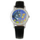 Watch featuring Louis Wain’s animal painting Cat in Sea of Flowers (1860-1939). A black and white cat with golden eyes smells yellow flowers. In the purple background are blue flowers. A wonderful gift for cat lovers and English art.