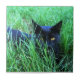 Black cat in green grass . . . must be waiting for a mouse to come by.