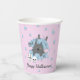 Cat in Pumpkin Skulls Candy Corn Pastel Halloween Party Paper Cups. Simple drawing of a cat in a pumpkin with two spooky skulls and candy corns. Great for kid`s Halloween party.