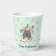 Cat in Pumpkin Skulls Candy Corn Pastel Halloween Party Paper Cups. Simple drawing of a cat in a pumpkin with two spooky skulls and candy corns. Great for kid`s Halloween party.